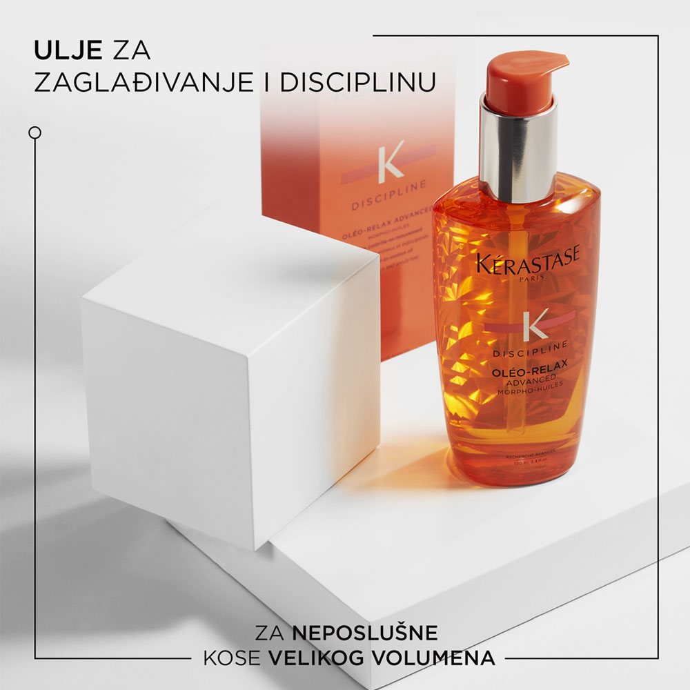 Zaglađujuća uljna nega za disciplinu kose. Formula sa Morpho-Oil kompleksom sadrži 3 hranljiva ulja i omogućava kontrolu volumena, anti-frizz zaštitu i hidrataciju. Ostavlja kosu glatkom, poslušnom za oblikovanje i sjajnom. Ovo lagano ulje štiti kosu od toplote do 230° C, što ga čini savršenom pripremom za oblikovanje toplotnim uređajima. Ulje za intenzivnu negu, pruža vlažnost vlasima i osigurava da je kosa glatka i homogena od korena do krajeva.