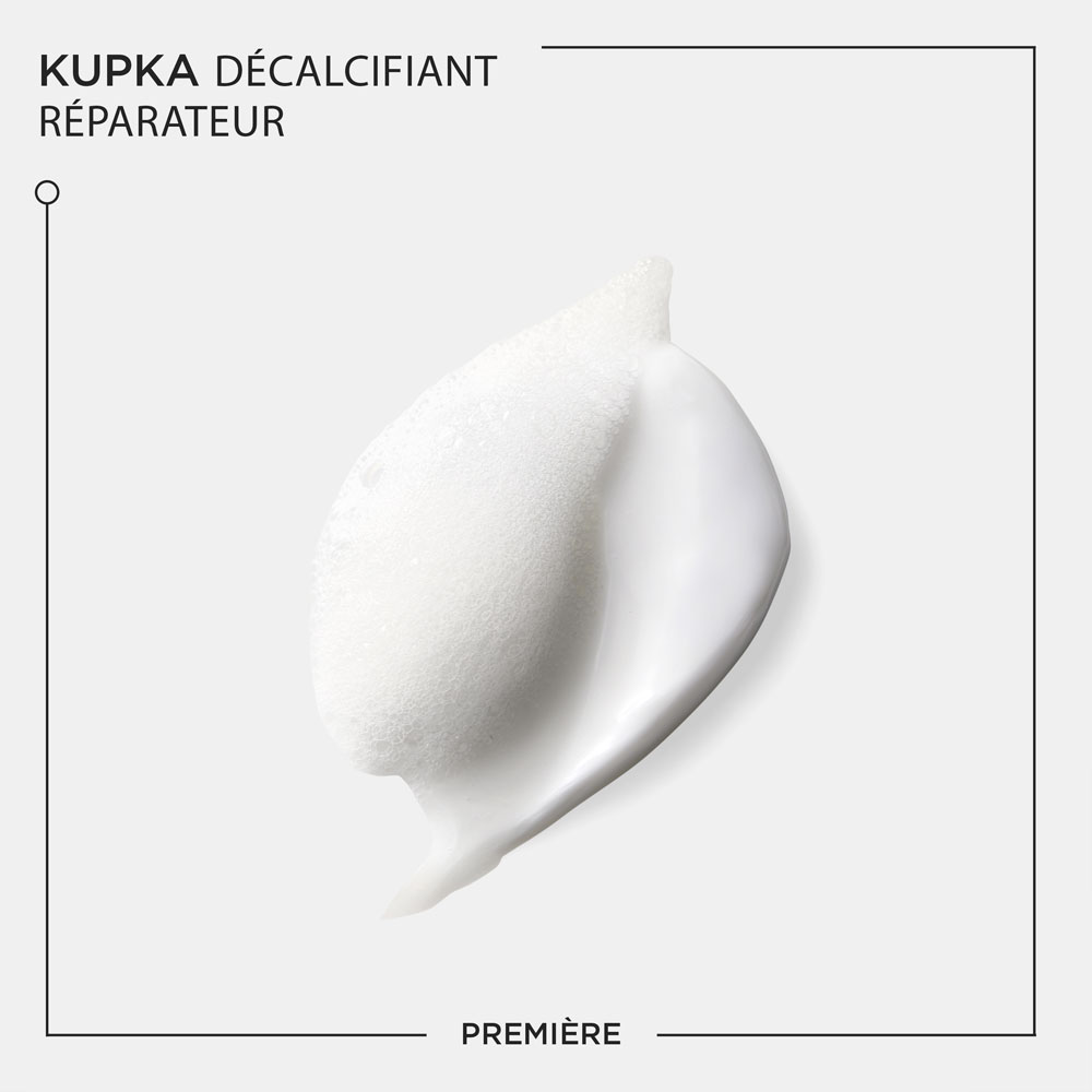 Kérastase Première Kupka je kupka za dekalcifikaciju* i obnavljanje namenjena svim tipovima oštećene kose. Ova profesionalna kupka nežno čisti skalp i kosu, istovremeno uklanjajući nataloženi kalcijum, koji dodatno slabi tretiranu kosu.